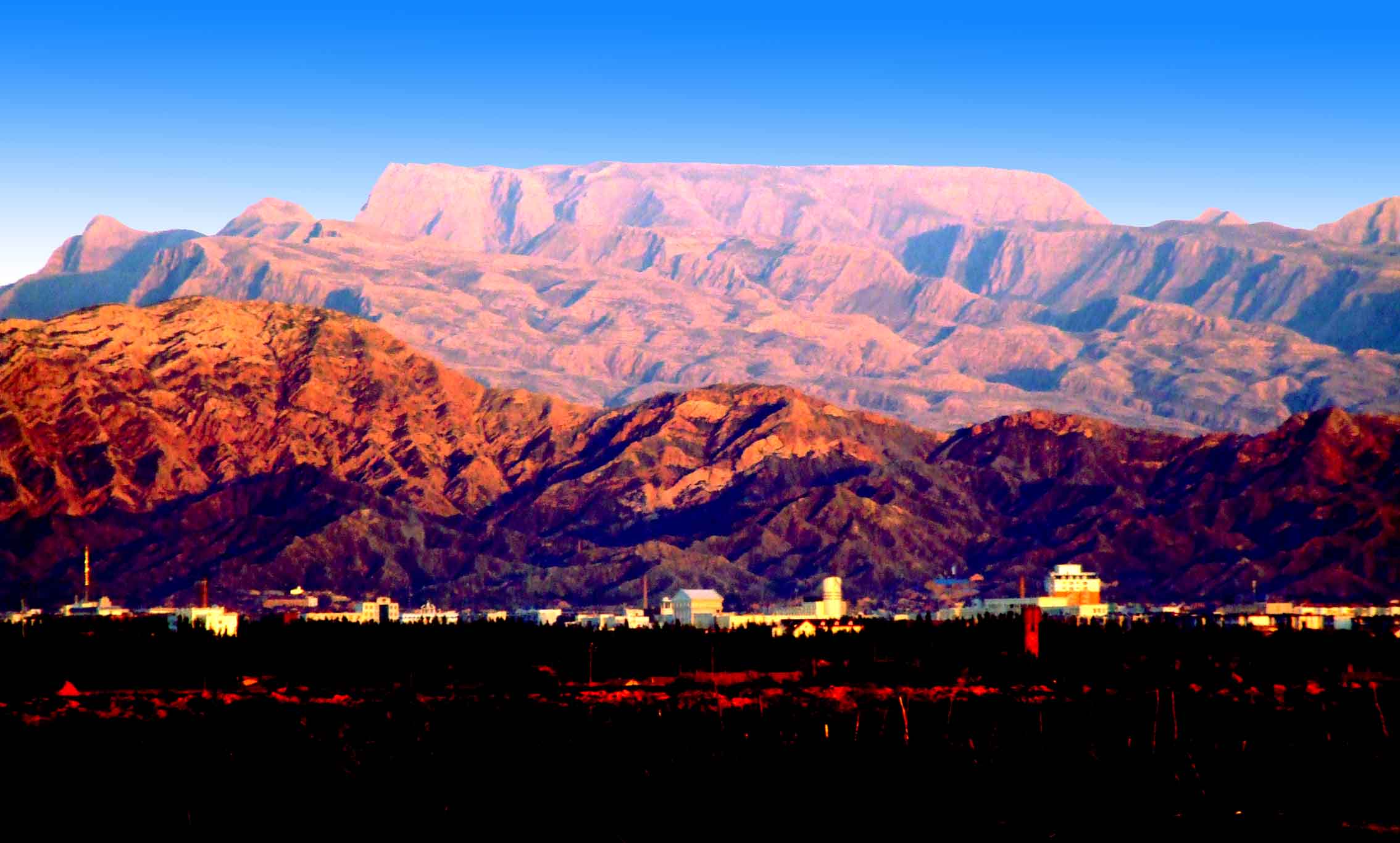 桌子山巖畫(huà)位于烏海市境內(nèi)桌子山東部,因其山頂平坦,遠(yuǎn)眺貌似桌子狀,故此得名。主峰海拔高度2149.4米,其山勢(shì)雄偉,巍峨壯觀。在桌子山脈諸多山溝的懸崖峭壁和溝畔石巖磐石上,殘存著大量古代巖畫(huà),巖畫(huà)學(xué)者梁振華先生將這一古代文化遺址定為“桌子山巖畫(huà)”。在桌子山的崇山峻嶺中,古代游牧民族羌、烏桓、鮮卑、突厥、黨項(xiàng)、蒙古等民族都曾先后交替在這里繁衍生息,創(chuàng)造過(guò)燦爛的古代文化,遺留溝畔石灰?guī)r磐石和懸崖峭壁上的古代游牧人的藝術(shù)珍品——巖畫(huà)成為歷史遺跡,是彌足珍貴的人文景觀。